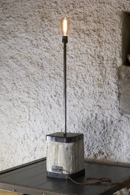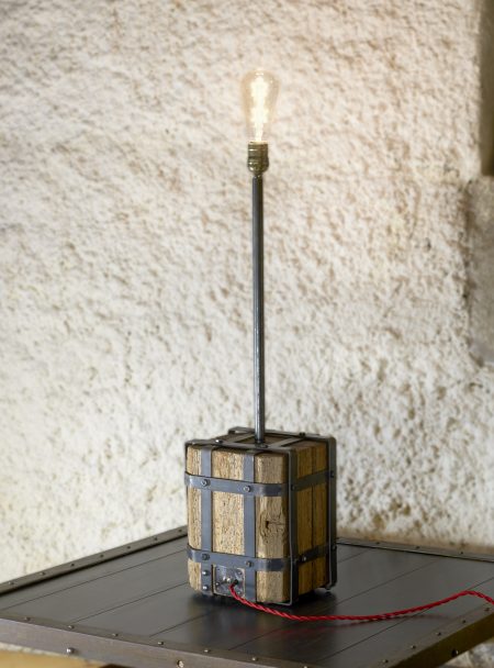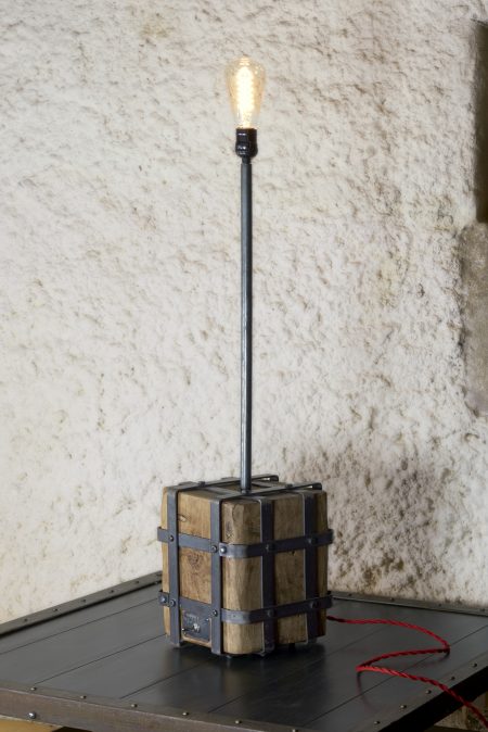 Cette lampe de caractère apportera à votre intérieur la touche industrielle des ateliers anciens et l’ambiance feutrée de son éclairage grâce à son ampoule Édison à filament chaud et original. Succès Vintage assuré, renforcé par le cube de bois de chêne massif issu de poutres centenaires de la région Champenoise.